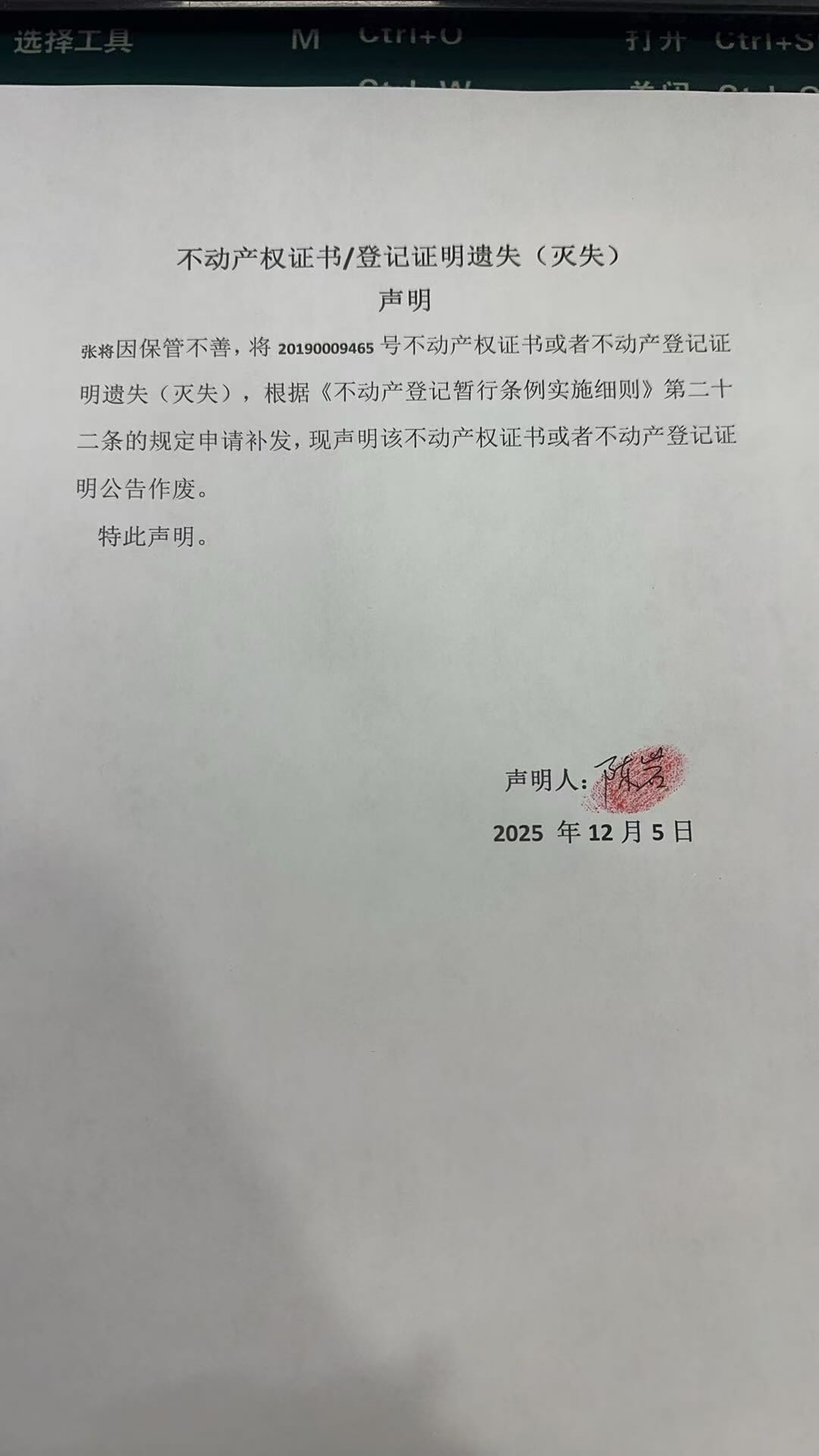 关于张将龙泽苑小区北区3幢1单元402室不动产权证书遗失公告